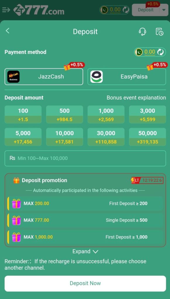ZT777 APK works with Easypaisa, JazzCash, and local bank transfers. These methods make deposits and withdrawals easy.