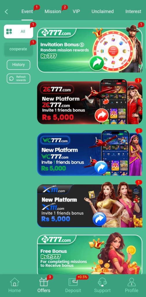 ZT777 Game includes a referral feature. You copy your referral link and share it. When a new user joins and plays through your link, you earn rewards. Many users in Pakistan prefer this feature because it adds a second source of earnings.